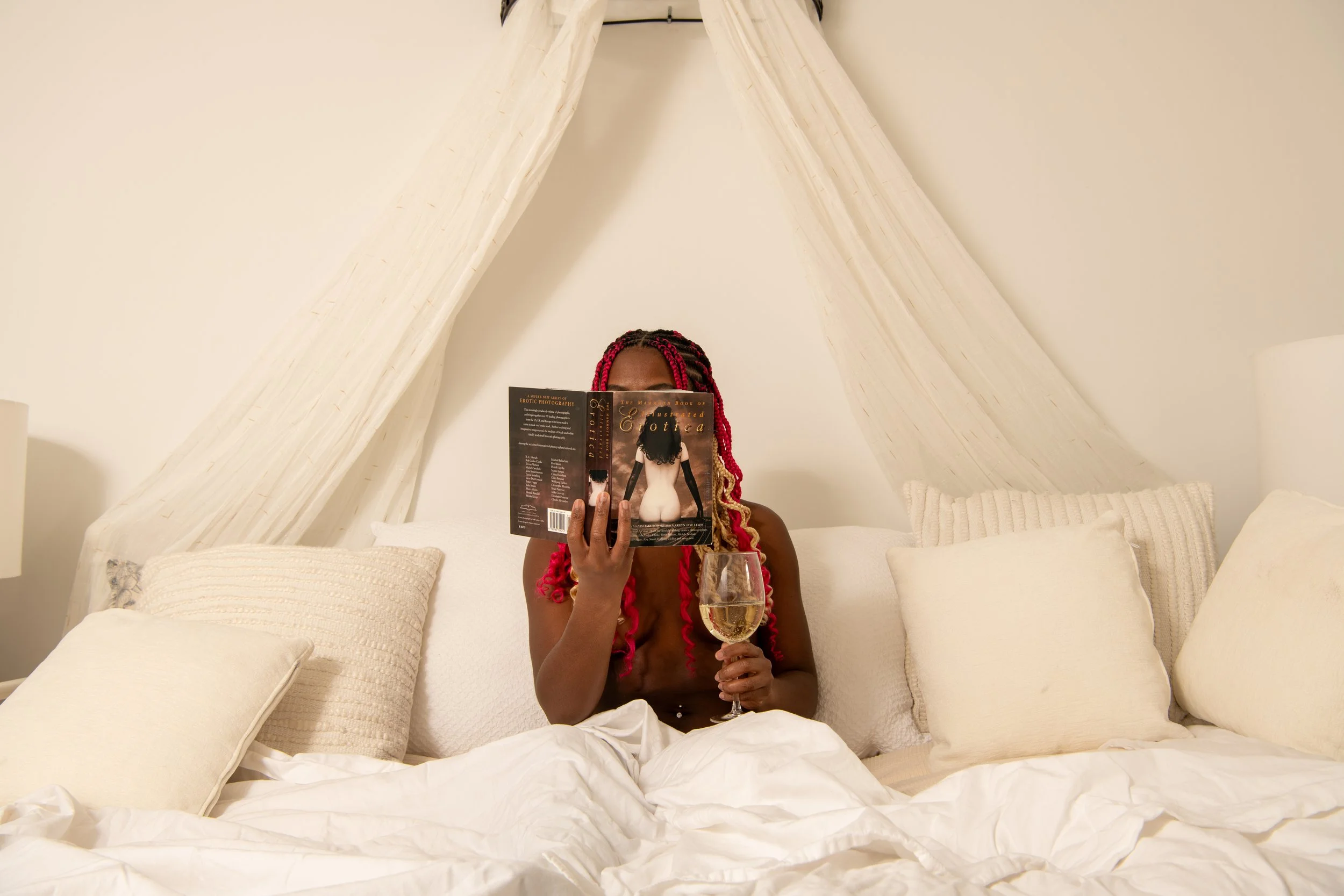 A Black female companion in Waterloo Ontario wearing white lingerie that she slowly removes in a sensual manner.